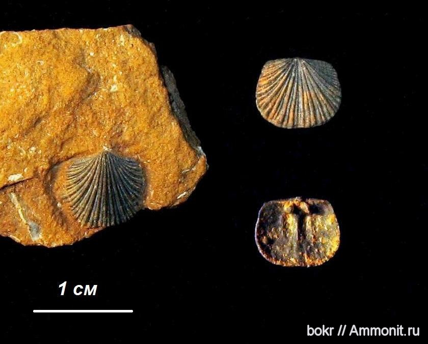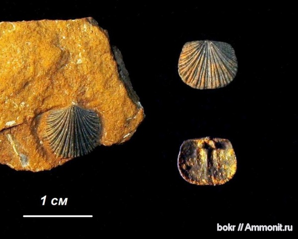 Мелкие брахиоподы из Кикерино (2003 г) Слева брюшная створка, справа - спинная. Раньше они именовались Paurorthis navis.