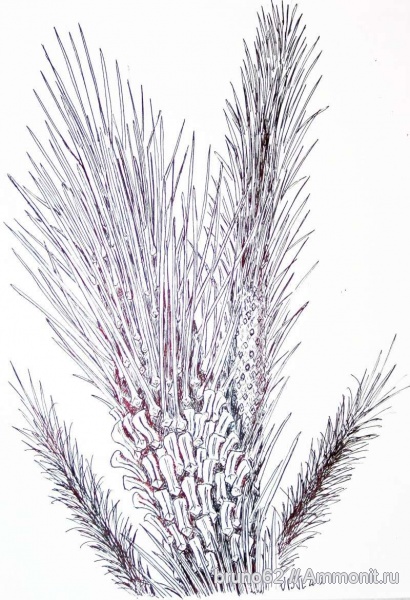 "In connection with the previous posts, here is a reconstruction in freehand style Asolanus , I tried to summarize the different parts of bark which are usually found like fragments, they are in general exfoliated. On my drawing I represented a fertile area according to the paper of Professor Stephan Schultka.