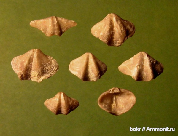 Брахиоподы собраны в Новгородской области на реке Колошке в 2009 г. Свинордские слои. (Левая верхняя возможно - A. svinordensis.)