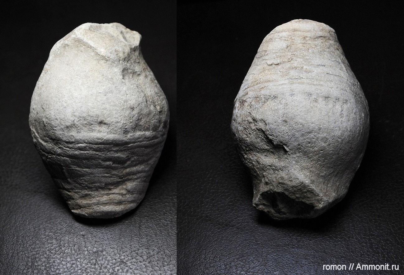 Тут не совсем понятно кто это. Вот это точно Evlanoceras. У них очень характерная форма устья - с выростами-"глазницами". И отпечатки мускулов у Evlanoceras с вентральной стороны, где отверстие воронки, крупнее, чем с дормальной стороны. Если тут отпечатки примерно одинаковые, то это кто-то еще из Discosorida | ||||||