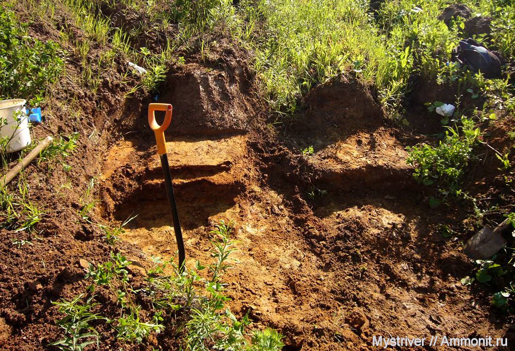 Снизу от этой промоины идет мусорная свалка, сверху ровняют глину. Этот участок - последнее, что осталось на данный момент. Я выложил фотографию как раз для того, чтобы если кто поедет, он ориентировался на эту "закопушку" (её найти не сложно) и не мучился с поиском нужного слоя. | ||||||