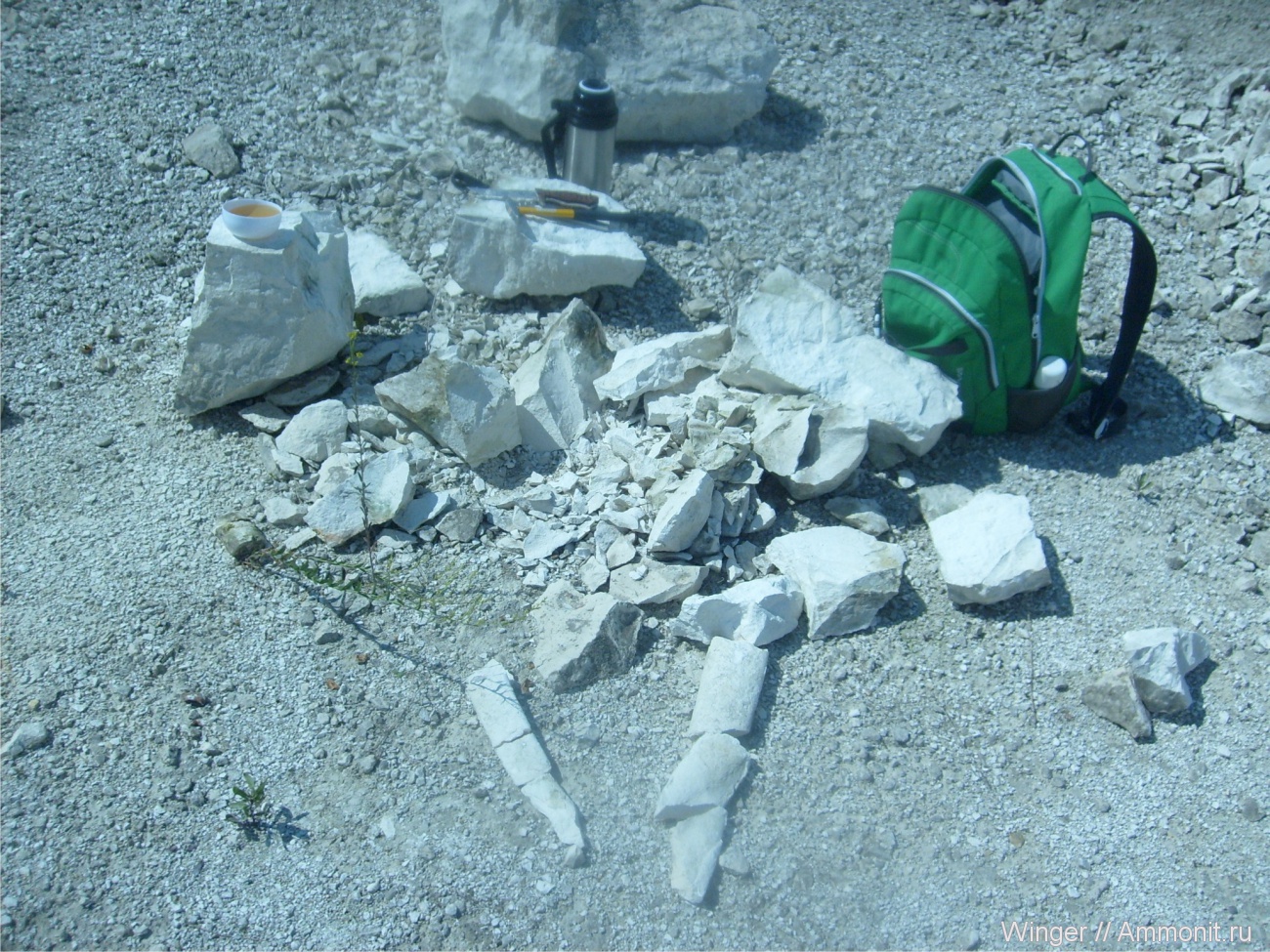 Результат второго дня вылазки в Вольский карьер. Из одной глыбы вывалилось несколько фрагментов от трех крупных бакулитов - увы на находку целого времени не оставалось, а потому планирую туда еще вернуться.