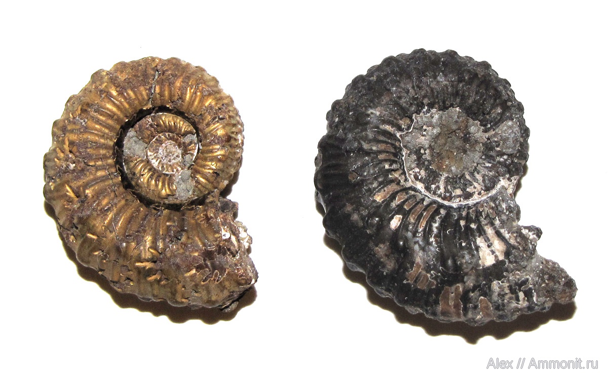 Сохранность правого аммонита на самом деле оставляет желать лучшего, но так как они из одной поездки и почти одного размера я его и выбрал для сравнения. | ||||||