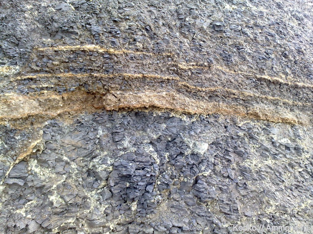 На фотографии четко видна структура осадконакопления этих глин с чередующимися слоями мелкого, желтого ракушняка! К сожалению ни возраст пород,ни принцеп их накопления мне не известен!