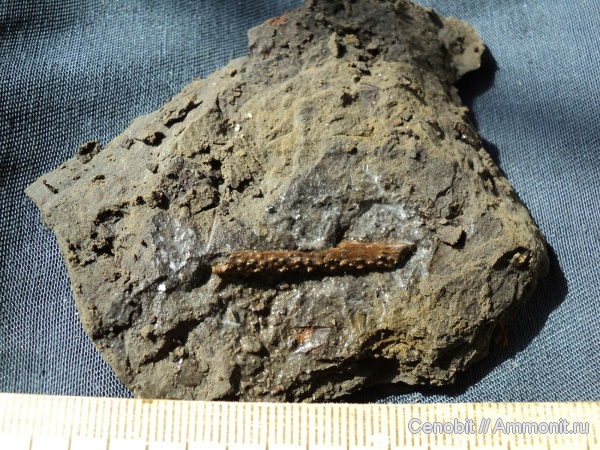 Память Ярославу не изменяет. В данном слое вообще вся фауна за исключением рыб (шипов, зубов и прочего) представлена лишь невзрачными отпечатками красного или реже желтого цвета. Так что это точно фрагмент шипа рыбы.