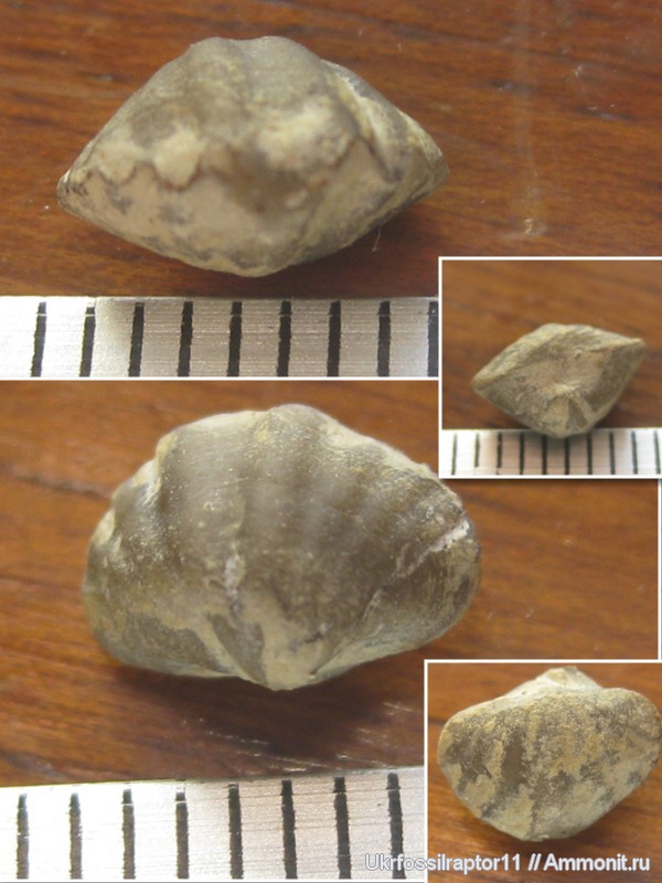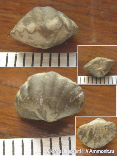 Конечно, абсолютно идеальным ничто не бывает, но все же среди моих ховеллелл эта самая лучшая. Дело в том, что эти брахиоподы очень редко поадаются целыми(с двумя створками), а тут вчера, при разбирании залежей камней дома с поездки 22 июня, мне попались аж 3 интересные ховелеллы - 2 целых(включая эту) и одна деформированная створка. Длина этой - почти сантиметр, и сохранилась она чуть лучше остальных.