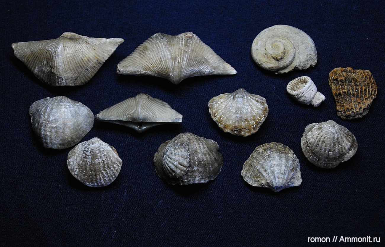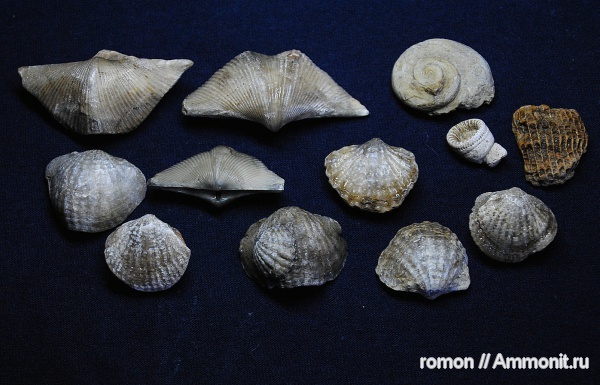 Если по брахиоподам, то слева наверху три Cyrtospirifer, а в нижнем ряду Spinatrypa. За виды не поручусь, поскольку не мой регион. | ||||||