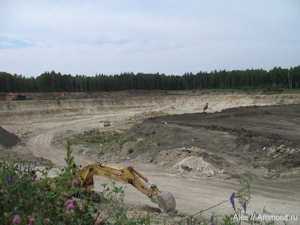 Песковский карьер в 2008 году. Справа - отвалы юрских глин, которые разравнивают бульдозером, слева - добыча известняка карбонового возраста.