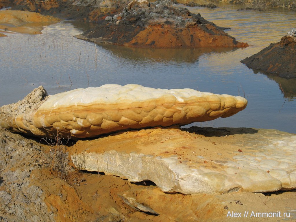 Очень любопытные конкреции плотного песчаника в карьере Еганово. Они, как и пески, которые там добывают, не представляют для палеонтологов никакого интереса, но выглядят очень любопытно. А окаменелости там ищут в черных юрских глинах, которые выкапывают при рытье дренажных канав.