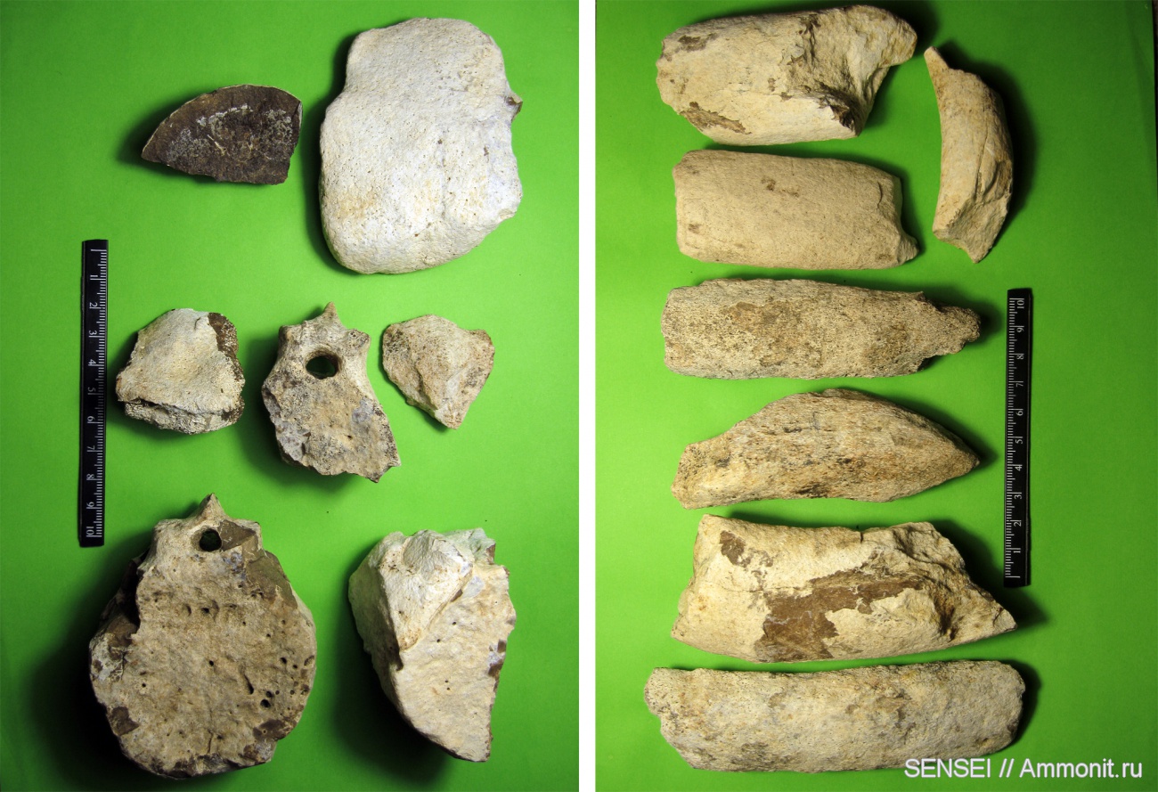 После длительного перерыва решил посетить местонахождение костей китообразных,и как оказалось не зря:за два с небольшим часа удалось значительно пополнить свою коллекцию.На левом фото верхний ряд-фрагмент плеча и черепа кита,остальное-фрагменты позвонков;на правом фото-фрагменты рёбер и(или) нижней челюсти;и ещё несколько десятков неопределённых фрагментов.