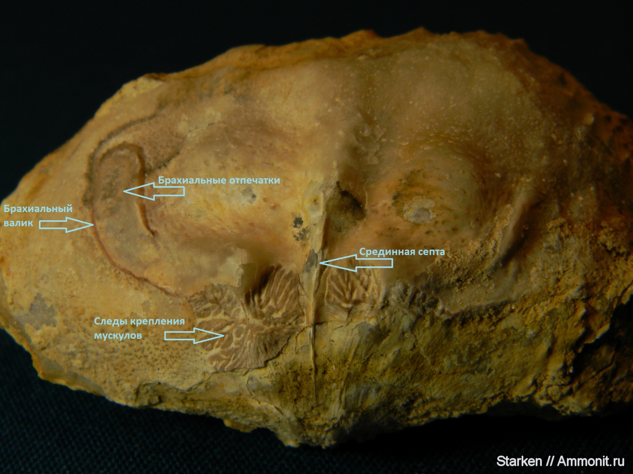 Нет это всё таки следы мускулов-замыкателей Внутреннее строение спинной створки брахиоподы продуктиды. , очень характерная черта продуктид. | ||||||