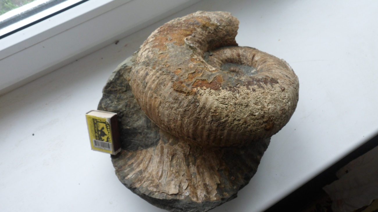 один из вчерашних находок обратите внимание на отпечаток жилой камеры какой широкий должен бит аммонит почти круглый.найден в аптовских слоях.