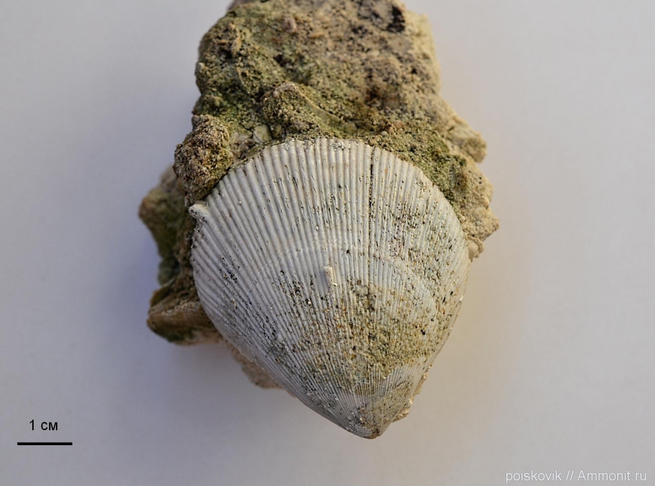 Двустворка размерами 5,8см Х 5,2см. Из карьера нуммулитовых известняков у села Пролом.