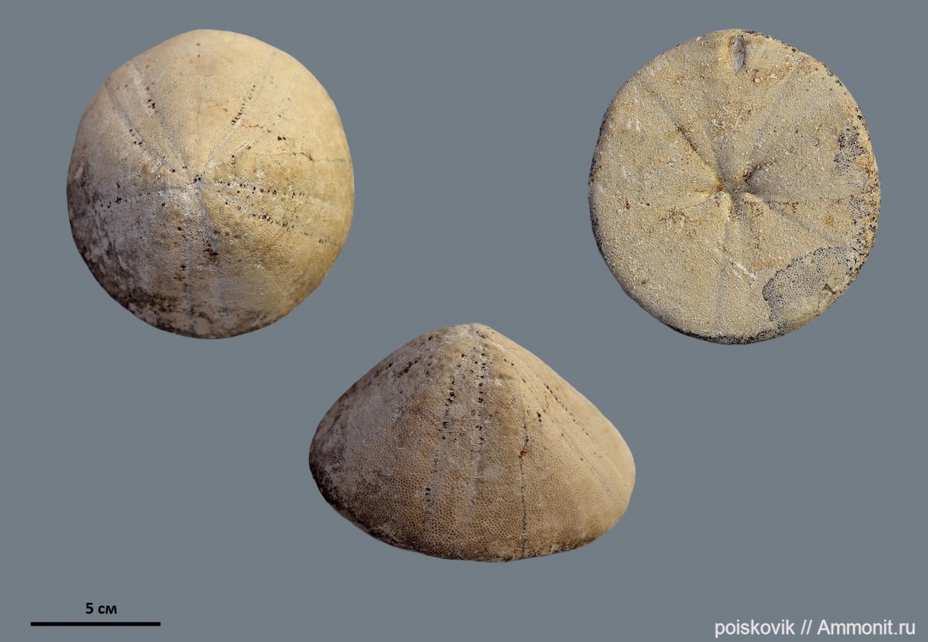 Крупный морской еж из нуммулитовых известняков карьера у села Пролом. Палеоген. Размеры: 12,5см Х 11,5см Х 6,5см.