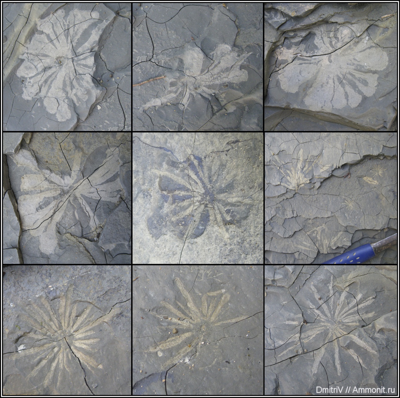 Здорово, вот тут как раз хорошо видно, что это не криноидеи и не медузы, а радиальные следы от норок. | ||||||