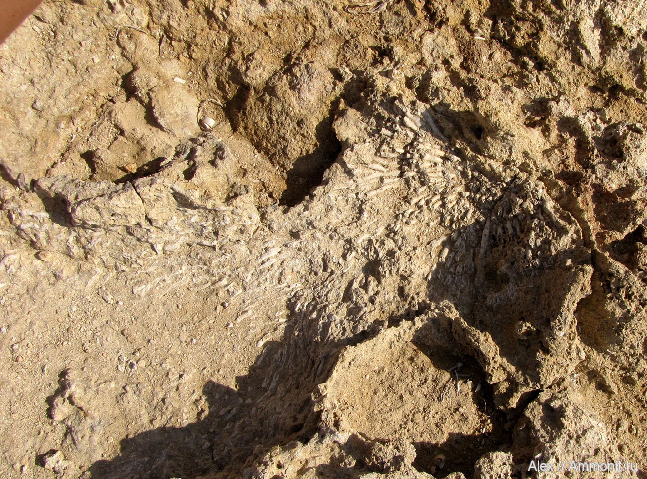 Хотя мелких обломков кораллов в прибрежных скалах Пафоса было много, колония кораллов мне попалась только одна - она на этом фото. Колония довольно крупная - больше 20 см в длину. В современном море кораллов в этом районе нет, хотя в других местах вроде бы есть коралловые рифы. Сейчас эта колония находится ориентировочно на высоте 2,5-3 метра над уровнем моря.