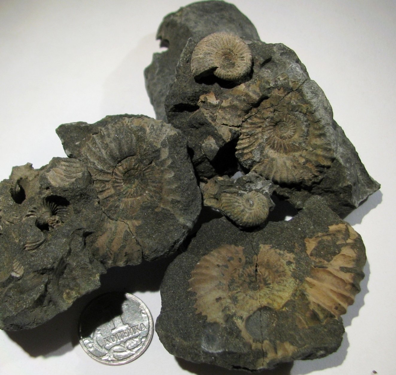 Нас ездило пятеро. Есть и целые дорсопланитесы и половинки оборотов, есть половинки и возможно целые в конкрециях Zaraiskites, есть Rogoviceras. Ещё некоторые древесины там набрали и конкреций со следами камнеточцев ) | ||||||