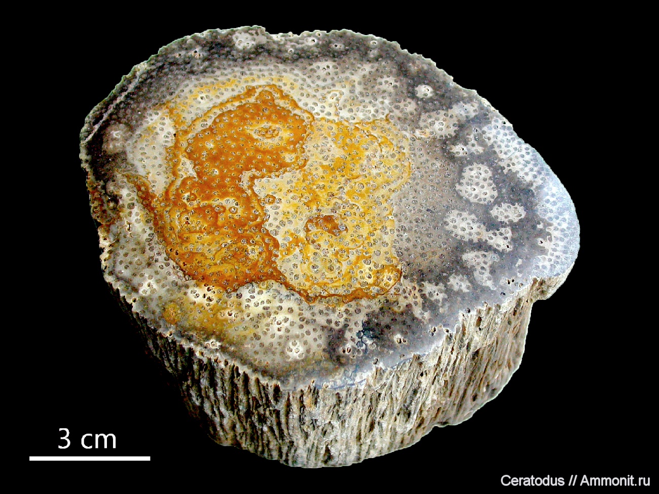 В палеоботанической литературе было описано насколько видов позднемеловых пальм из Индии. Однако в продаже или в собраниях коллекционеров эти образцы по какой-то причине практически отсутствуют. Это первый образец индийской пальмы в моей коллекции, попавший ко мне с аукциона eBay. К сожалению более точная привязка к местности отсутствует. Тем не менее, учитывая данные литературы, можно предположить, что это образец верхнемелового возраста.