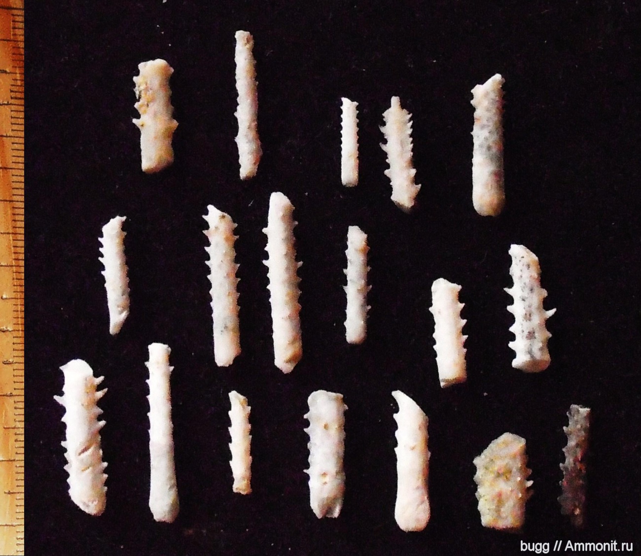 После неоднократных вопрсов к фото Иглокожие Симферополя. и к ежам из Белогорска( Conoclypus conoideus ):по поводу находок игл.Решили действительно их поискать.В местах находок ежей из Симферополя,при более детальнои осмотре нашли большое количество иголок и их фрагментов более 50 шт!Возможно они и относятся к данному виду ежей.Сфотографировали несколько игл,чтобы не загромождать фото.