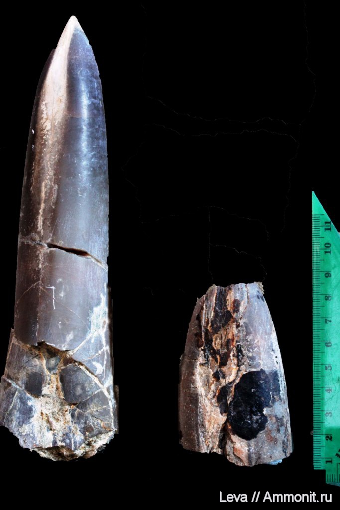 На представленной фотографии рядом с образцом размещен фрагмент еще более крупного ростра белемнита того же рода, найденного в прошлом году в п. Захарьевский Рудник (5 км. севернее г. Ульяновска. Волжский ярус). Его диаметр составляет около 6 см.Какой-же длины был сам ростр? А сам белемнит?