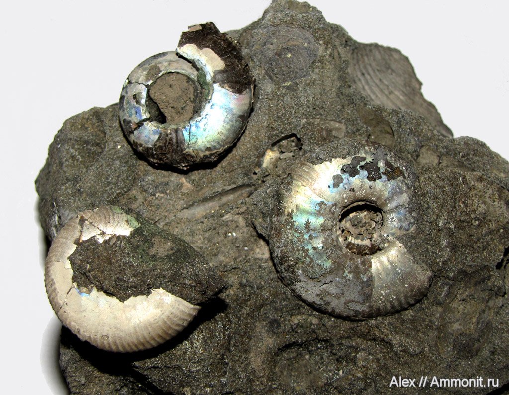 Три раковины аммонитов Craspedites довольно средней сохранности. Диаметр самой крупной из них - 3,5 см.