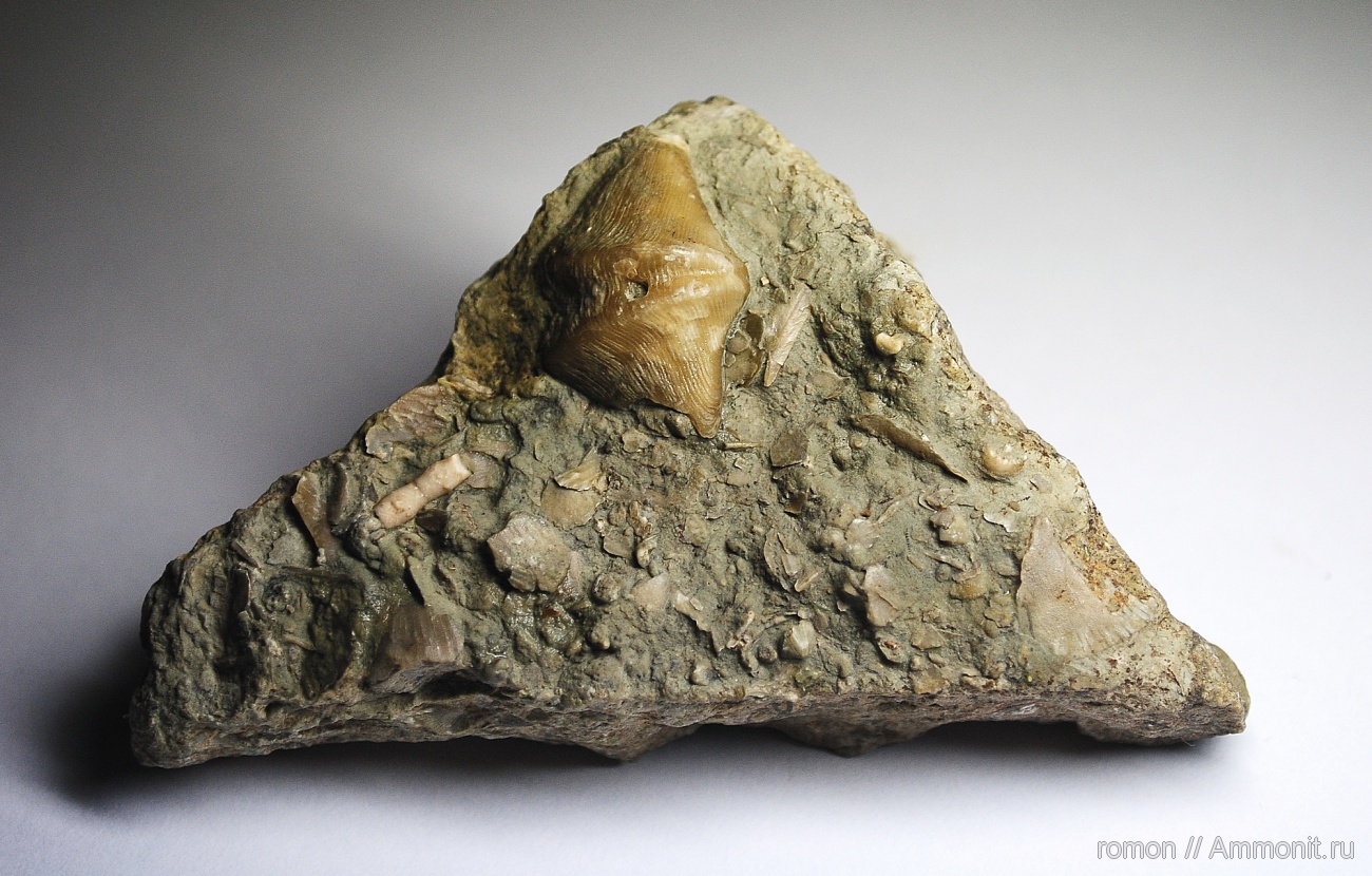 Очень красивая брахиопода,здорово смотрится на матриксе с фрагментами морских обитателей. | ||||||