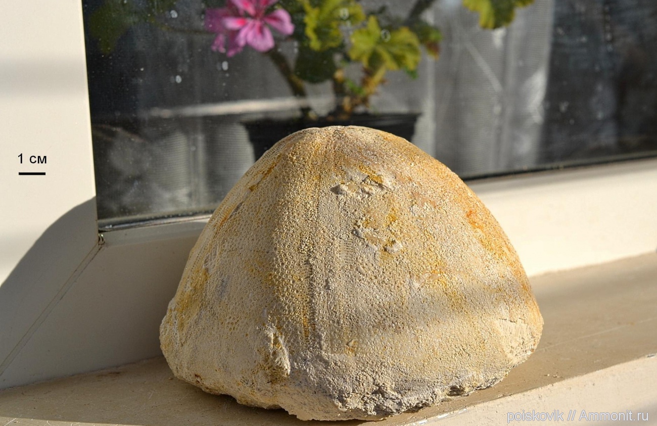 Морской еж. Диаметр основания - 15см, высота - 10см. Теперь это самый крупный из найденных нами ежей. Палеоген. Карьер у села Пролом.