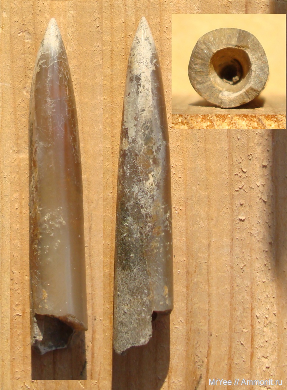 Ещё один представитель щёлковских белемнитов, встречающийся ниже слоя с ракушняком и хиболитами. Вмести с этими рострами, встречающимися чуть выше этого слоя, они напоминают вот эти ростры из саратовской области. Я предполагаю, что это уже не келловей, а нижний оксфорд.