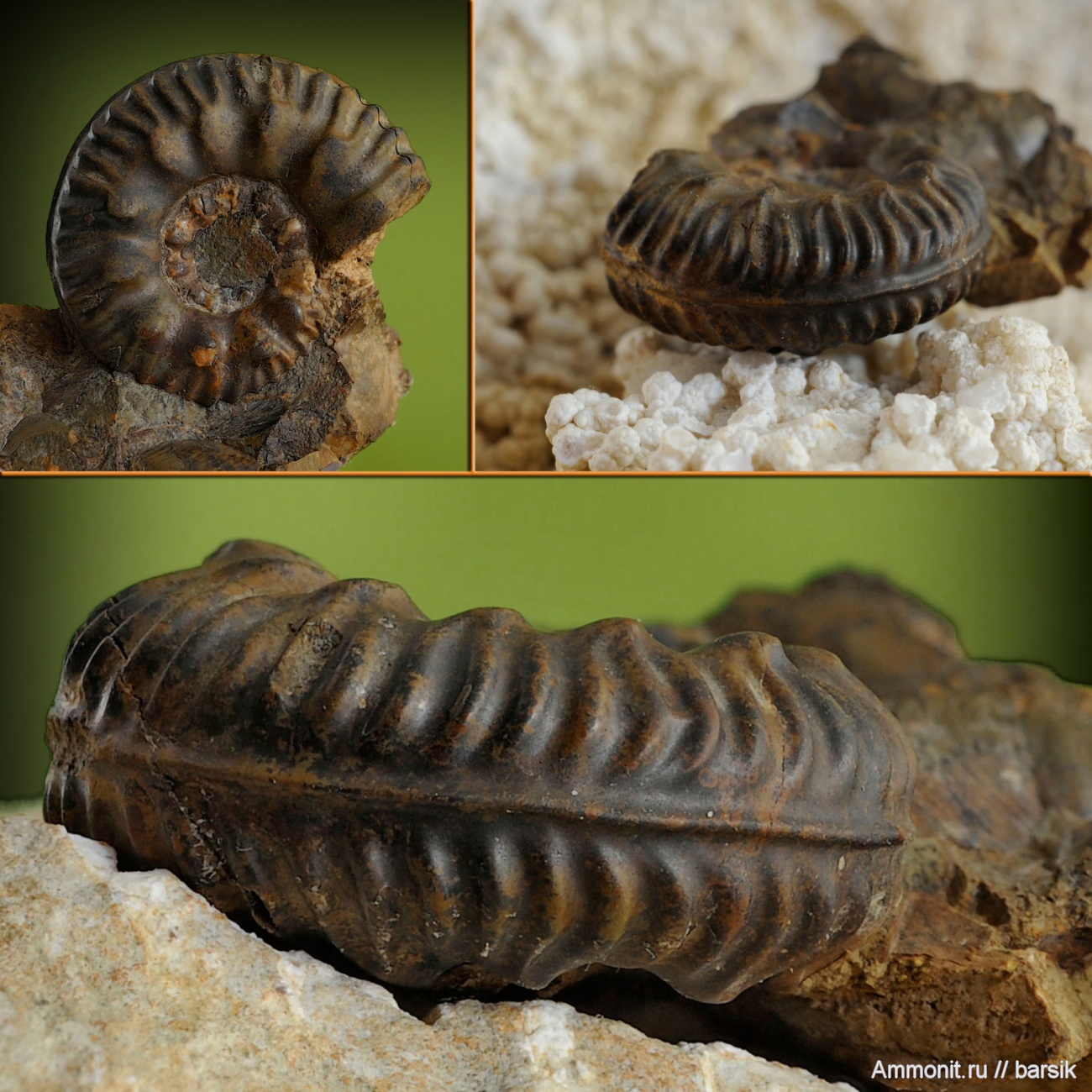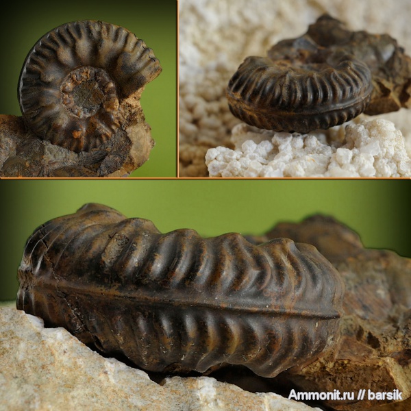 Этих аммонитов не много на сайте. У раковины очень интересная структура, особенно, вентральной стороны. Мелкий,но четко очерченный киль и сложные ветвящиеся ребра.