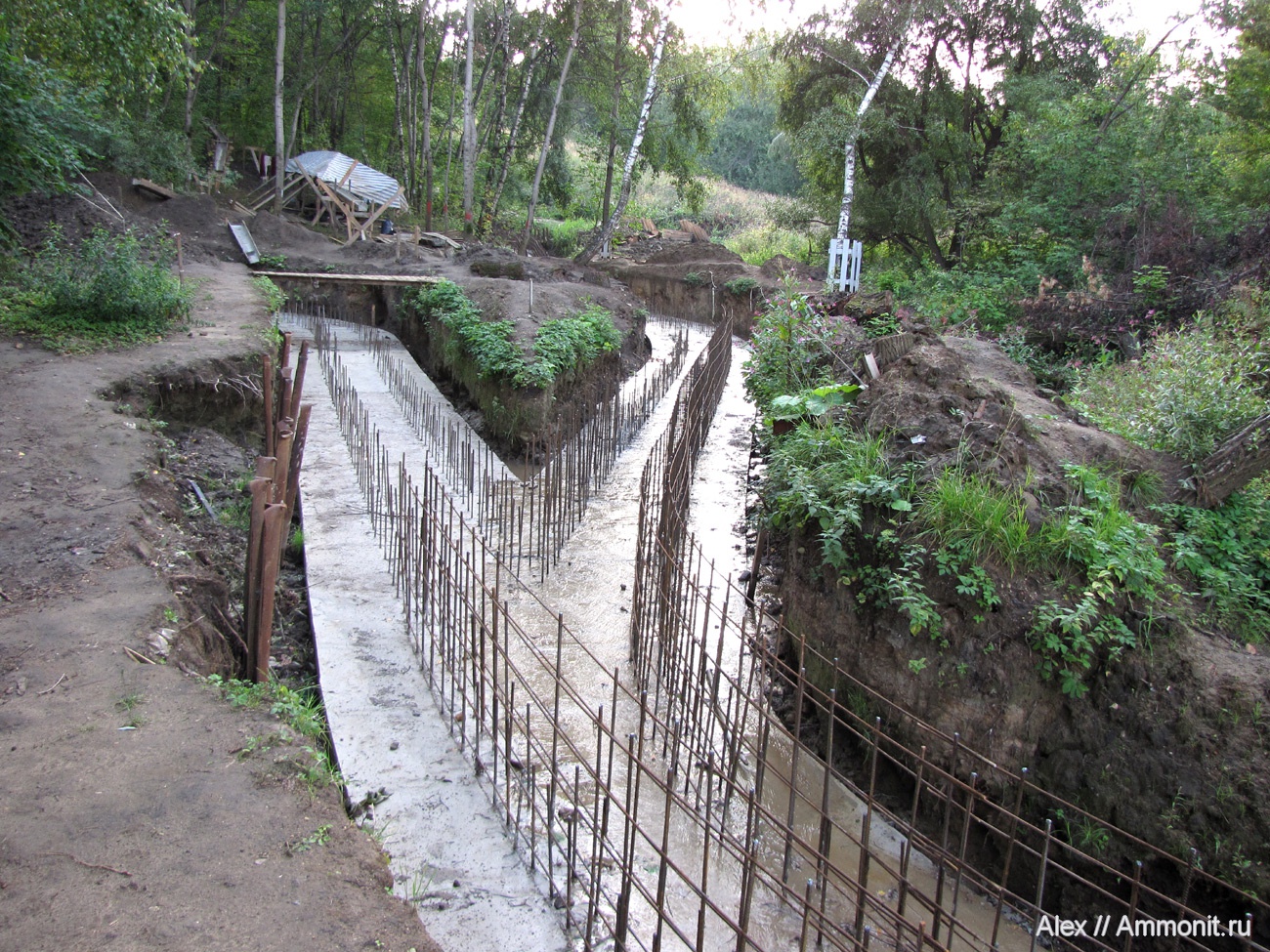 Тоже самое происходит и в ручьях, расположенных ближе к центральной части Коломенского (в которых также были аммониты). Ручьи расположенные дальше (в сторону железнодорожного моста) пока еще не тронуты, но вдоль всего леса свалены какие-то кучи земли, бревна, натянуты ограничительные ленты.