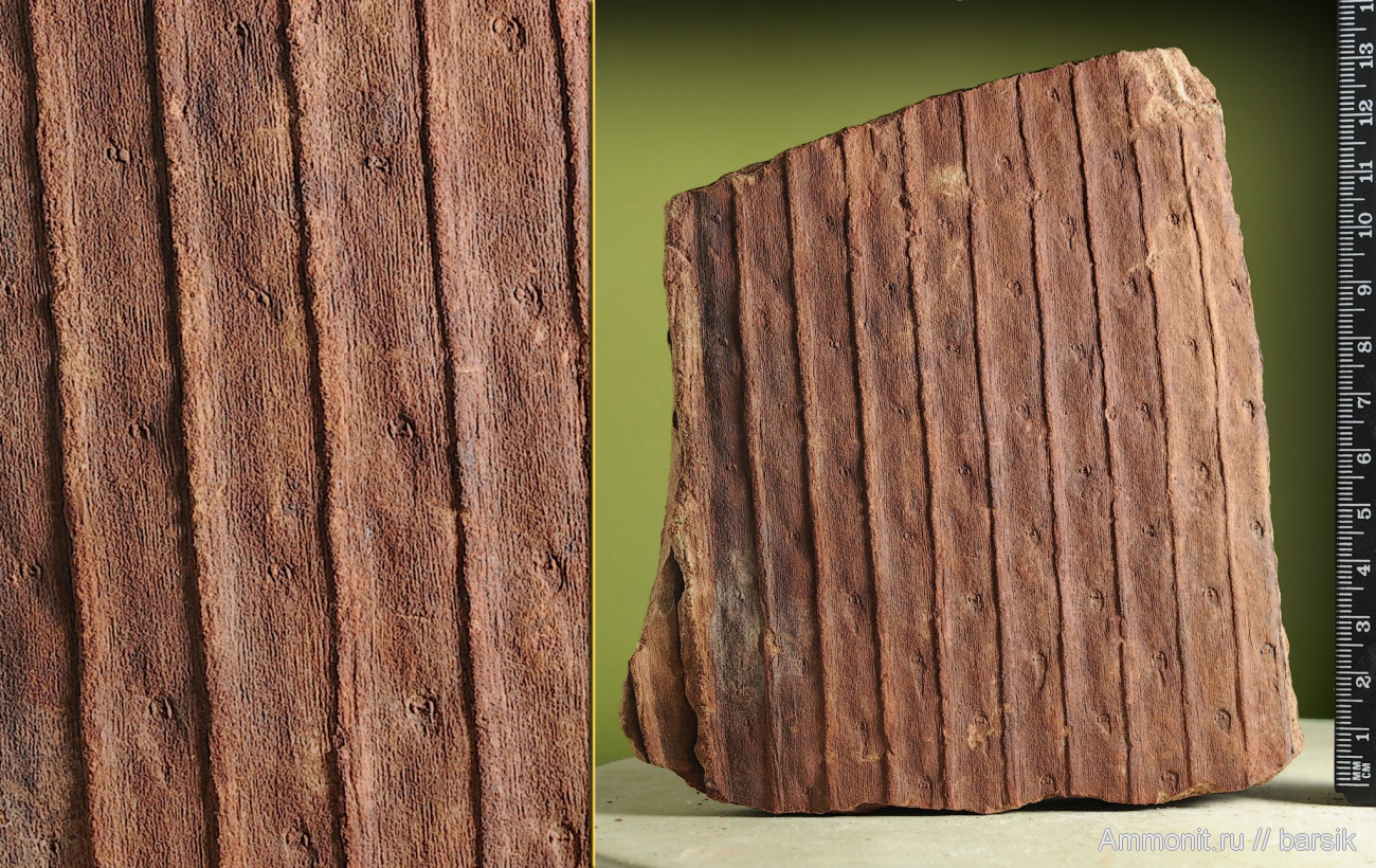 Это внутренний слой без листовых рубцов. Особенность данного образца в редком расположении листьев и сохранении морщинистой структуры поверхности.