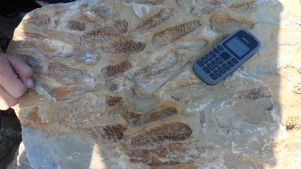 сегодня ездил на море избербаш и концу дня посетил каменный карер и кои что нашёл ребро и позвонок сарматского кита целился на панцер черепахи но не удалось найти а на камнях не которых местах били такие хвойные шишки .