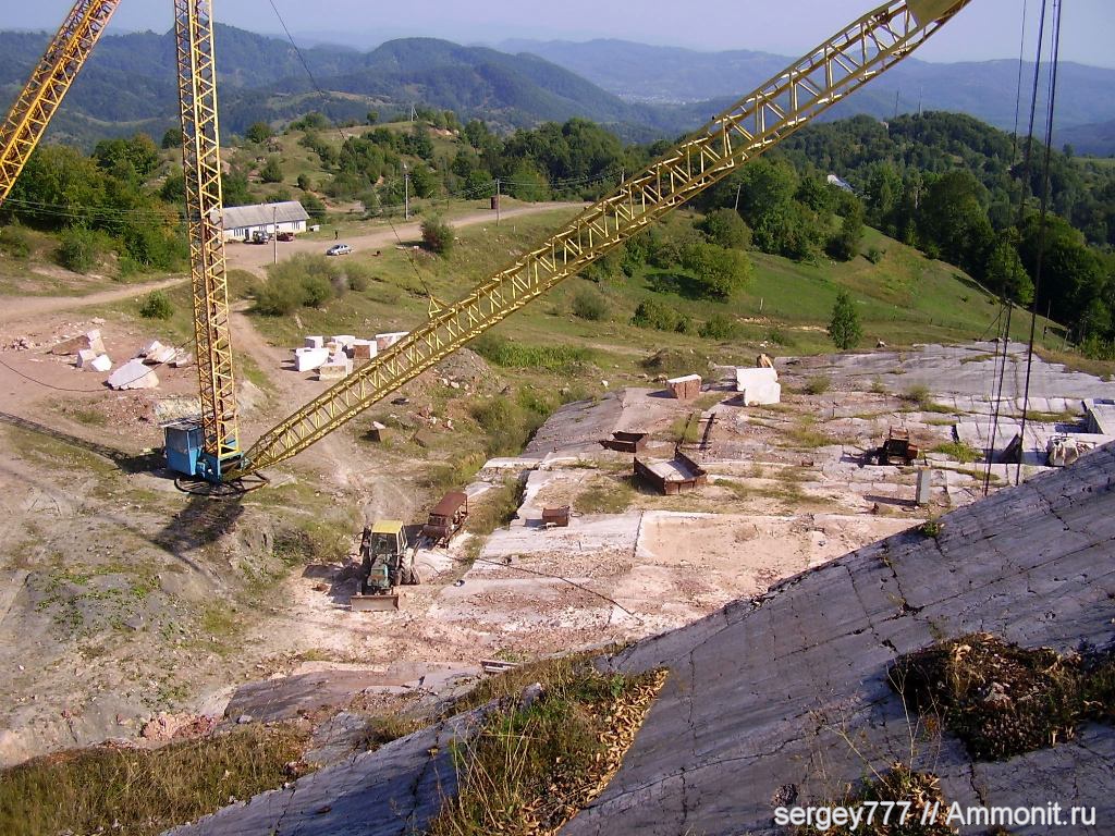 Интересным есть способ добычи мрамора с этого карьера. Сначала ровными кусками срезают породу ( резаний мраморный блок бывает до 40 тон) а после поднимают большим краном и транспортируют у низ в цех для подальшей обработке. Карьер работает с 20х годов 20 ст.