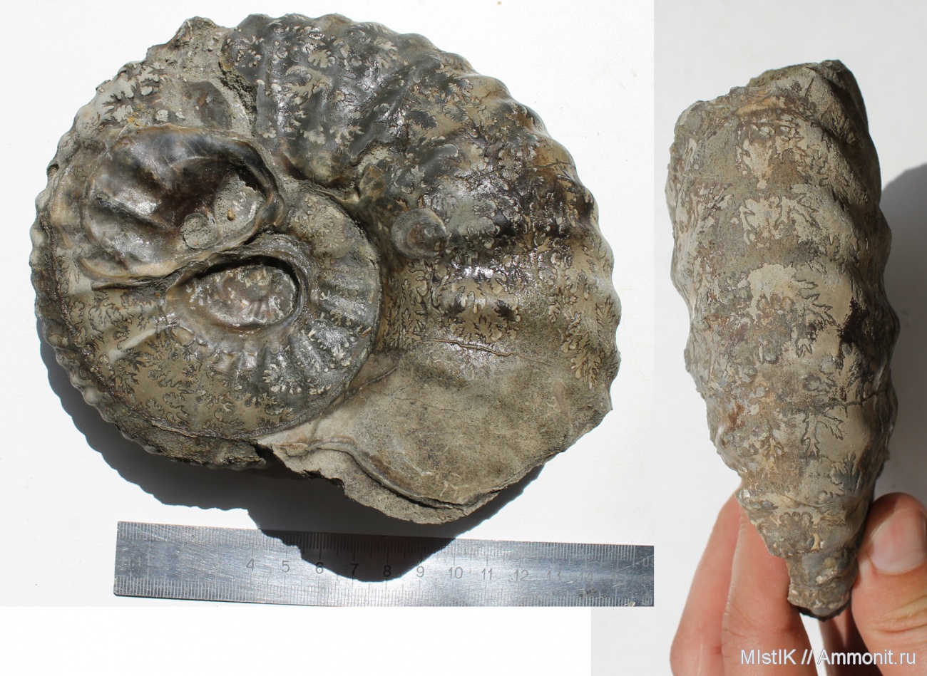 Обрастатели на нем - какие-то двустворки-устрицы. Но похоже, что обрастание посмертное для аммонита, они на ядре сидят, а не на раковине. | ||||||