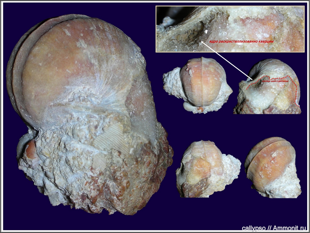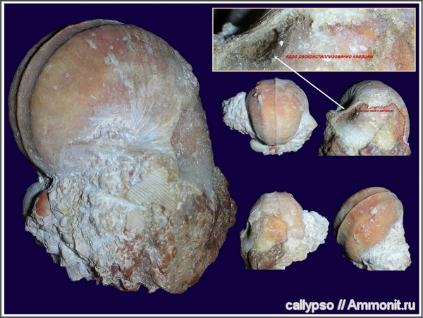 Замещение раковины - минералы группы кремнезёма (переходная вариация "кремень-халцедон").