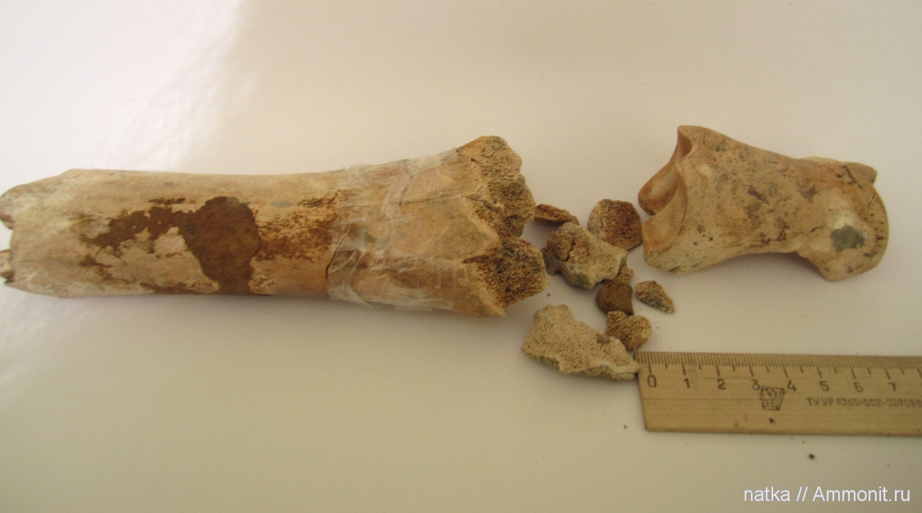 IEVB спасибо, я по вашему первому комментарию с определением времени уже кое-что посмотрела, очень сильно похоже на конечность верблюда (у верблюда переход от длинной кости к "фаланге" без дополнительных мелких костей, наш вариант, так как при извлечении глина была плотная и мы ничего не могли пропустить) или близко к лошади. Но решила что с верблюдами это я переборщила, и вот ваш второй комментарий, что верблюды жили в Самарской области! буду более внимательно читать ссылки и выдвигать гипотезы.