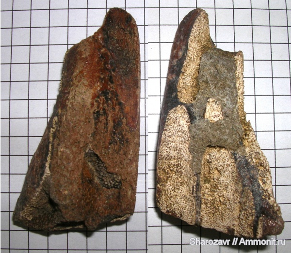 Спасибо Евгению Попову за определение и внимание к моим находкам. Цвет натуральный, найдена мной в фосфоритовом горизонте. Но в тот день Александр Аркадьевич был с нами. Может повлияло? ))) | ||||||