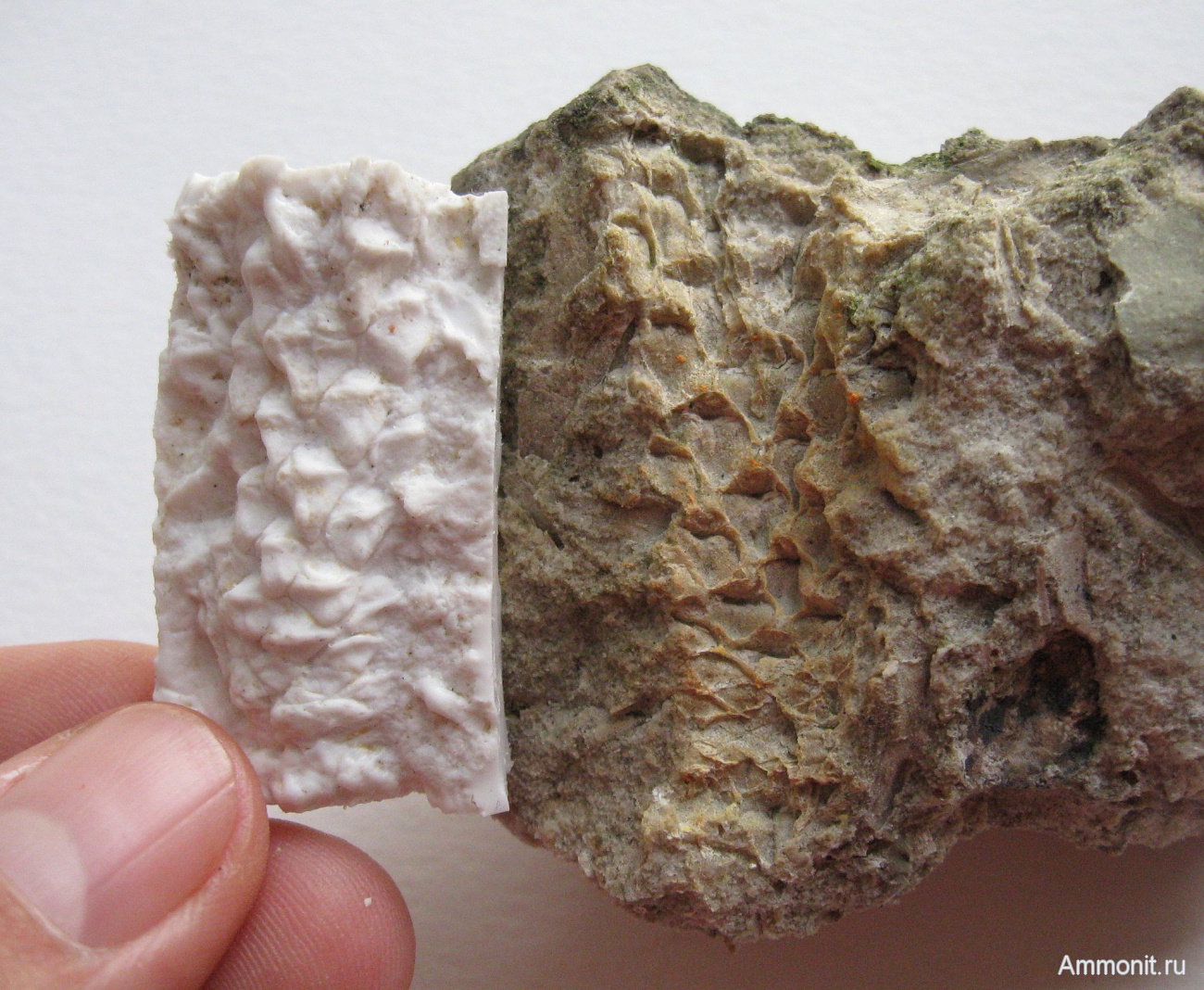 Образец из одного из новопсковских карьеров. Рядом - силиконовая отливка.