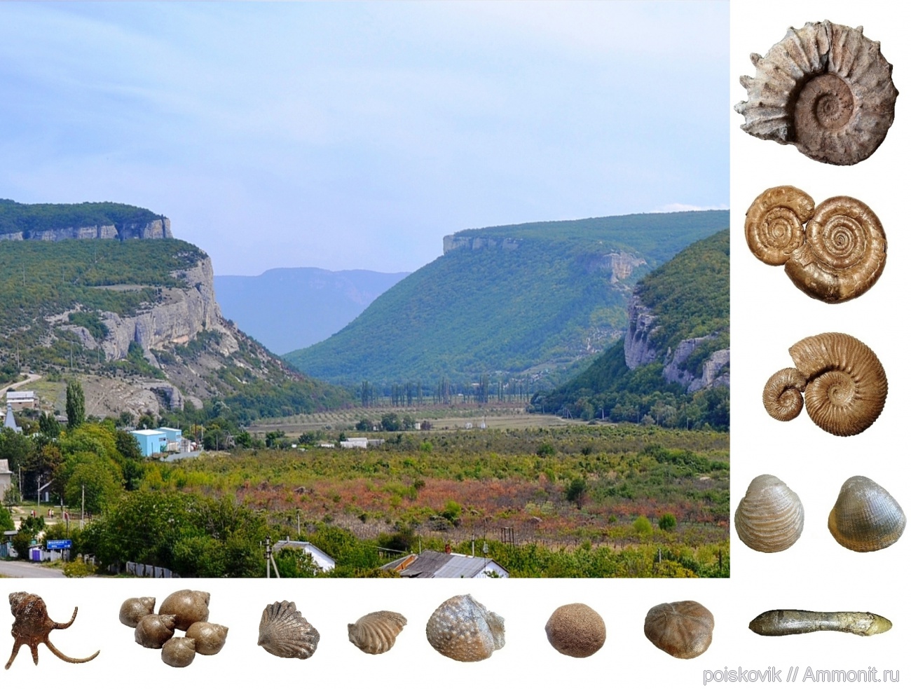 В меловых и палеогеновых отложениях долины реки Бельбек встречаются аммониты, гастроподы, брахиоподы, двустворчатые моллюски и мн.др. Наиболее богаты фоссилиями нижнемеловые отложения в районе села Куйбышево: Кабаний лог - 44°36'55''N; 33°53'14''E