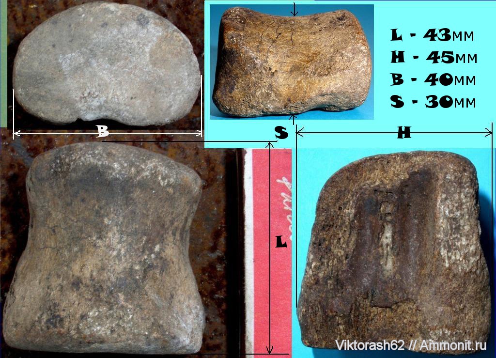Это хвостовой позвонок. Сходство с китообразным есть, но нет уверенности, т.к., например, позвонок уплощен сверху вниз (но может, это результат эрозии?) | ||||||