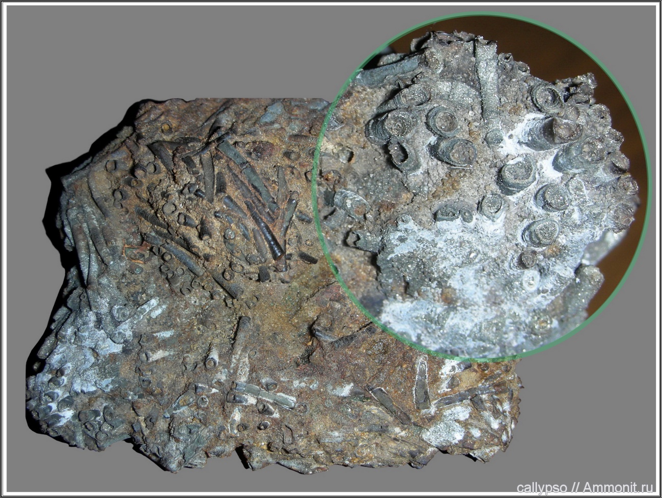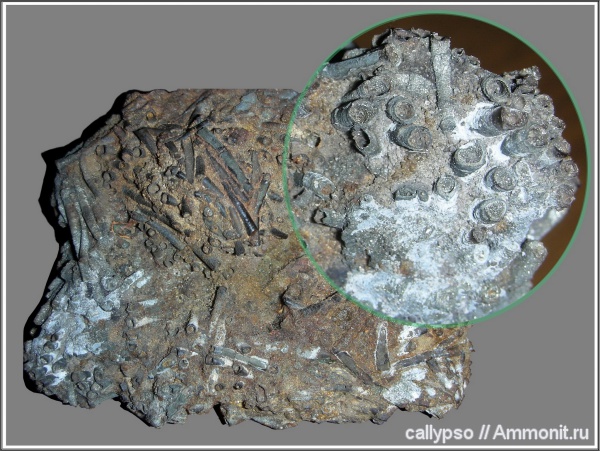 Они точно круглые в сечении. Но там сохранились ядра, а не раковины, и сохранились плохонько. Но их в паре квадратных сантиметров довольно много, видимо, иногда они жили колониями. | ||||||