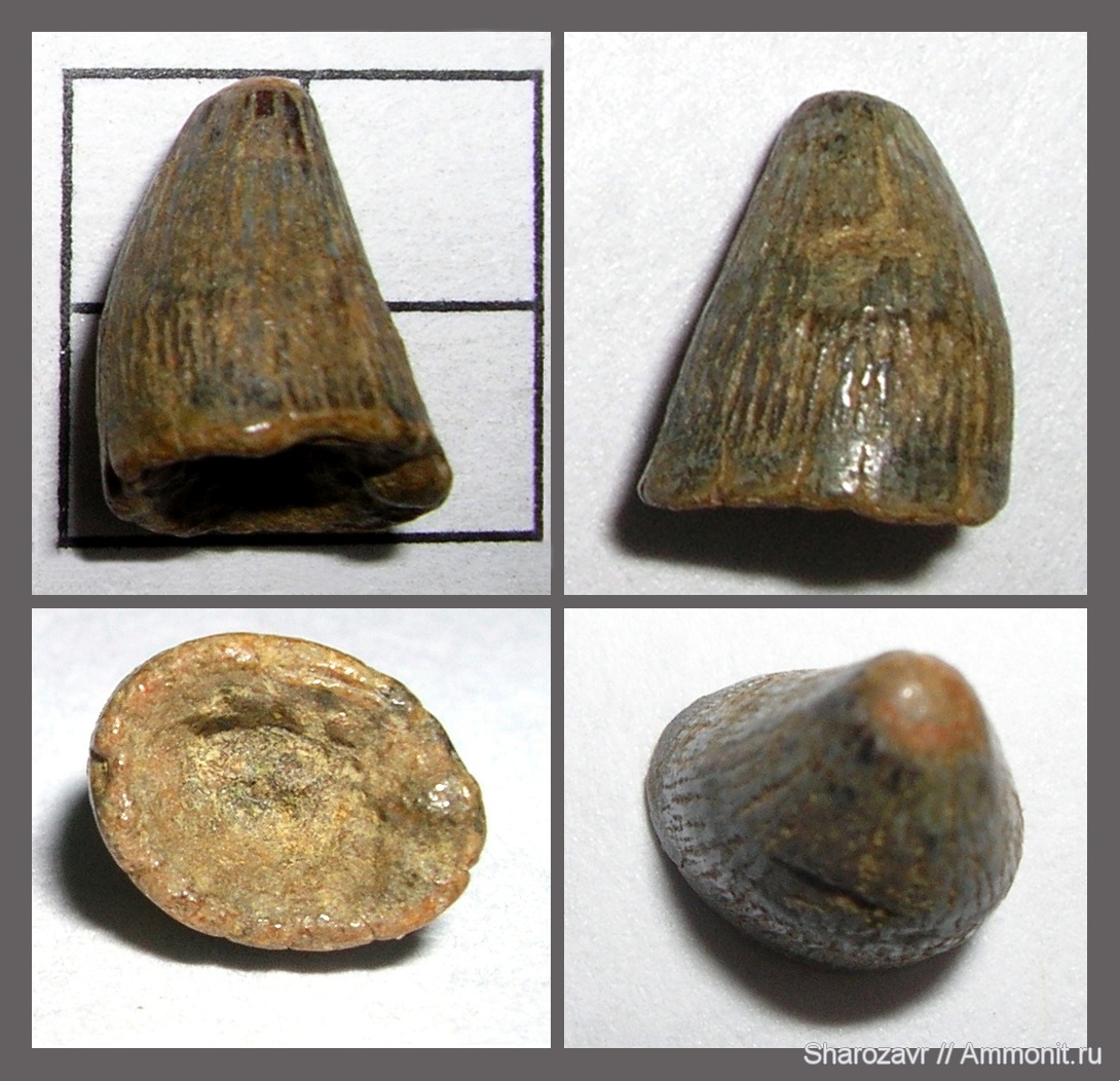 Самому любопытно. Общая окатанность присутствует, но есть впечатление прижизненного стирания. По идее же зуб не кувыркается, а именно катается по дну в потоке, значит стенки больше подвержены абразивному воздействию песка. А здесь вершина сточена больше, хотя должна быть меньше. | ||||||