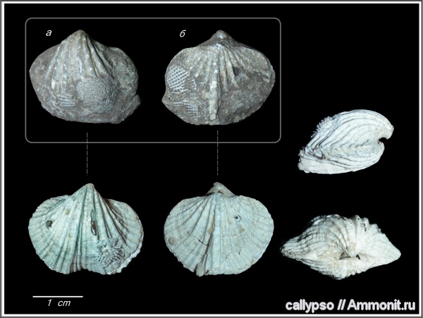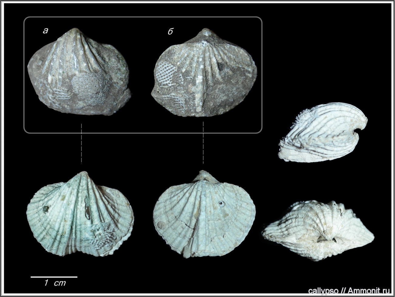 Правильнее сказать из семейства спириферид (?), смущают закруглённые "крылья", у чисто спирифер они острые и оттянутые в стороны. | ||||||
