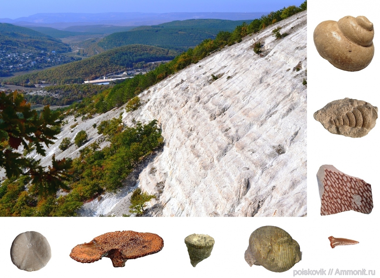 В обнажениях верхнемеловых пород в окресностях села Терновка (44°35'15''N; 33°45'55''E) встречаются: ядра гастропод и аммонитов, белемниты, морские ежи, кораллы, губки, зубы акул, двустворчатые моллюски и др.