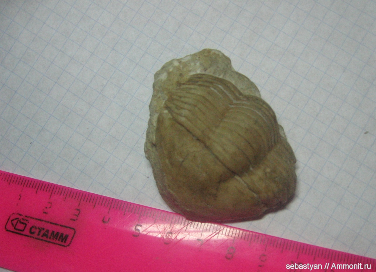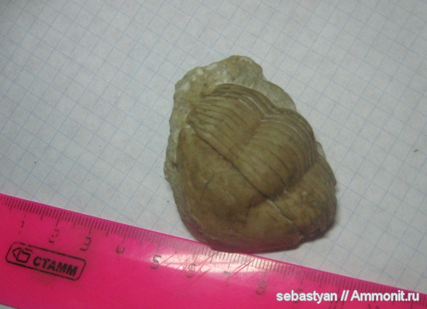 Это Illaenus. Что-то типа Illaenus schmidti, но без головного щита затруднительно. Возраст - средний ордовик, азерийский горизонт | ||||||