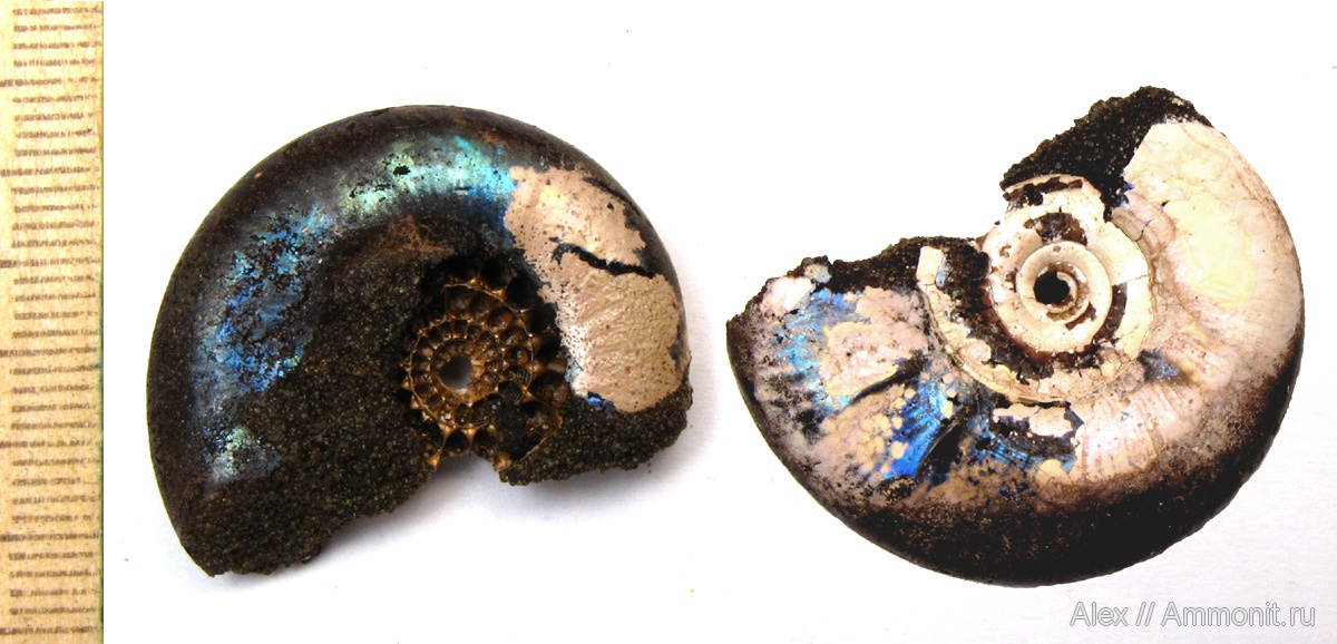 У меня еще есть гладкий аммонитик с двумя мощными ребрами у устья, но симметричными с двух сторон, надо его тоже выложить. | ||||||