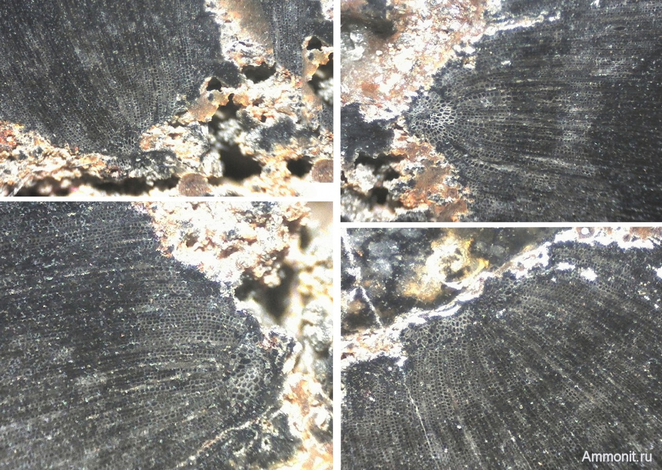 Если присмотреться, то заметны какие-то образования ("пучки" трахеид) у сердцевины этого образца.