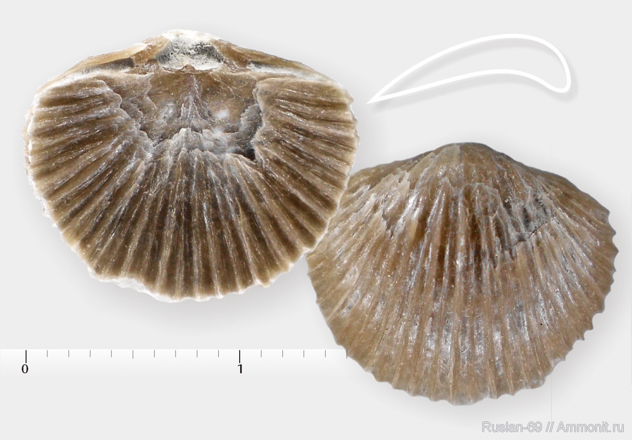 У Cyrtonotella раковина вогнуто-выпуклая, ребра разных порядков, в том числе и характерно вклинивающиеся как на этой фотографии. Для определения любого образца рекомендуется обращаться к работам, в которых описаны данные таконы.
