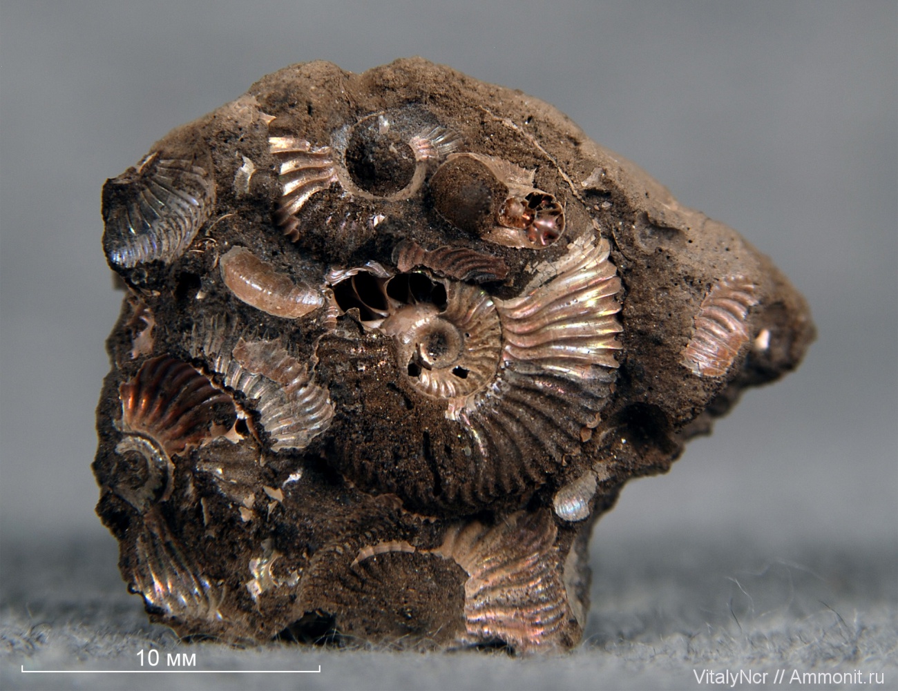 Иногда в Марково попадаются такие маленькие конкреции, плотно набитые фрагментами аммонитов Amoeboceras sp.