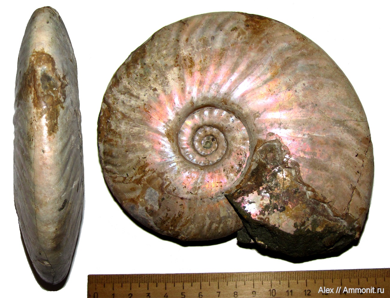 Макроконх Cleoniceras sp. с Мадагаскара, приобретенный на Ebay. Эти аммониты были довольно крупными. У него красивый перламутр, который очень трудно нормально сфотографировать.